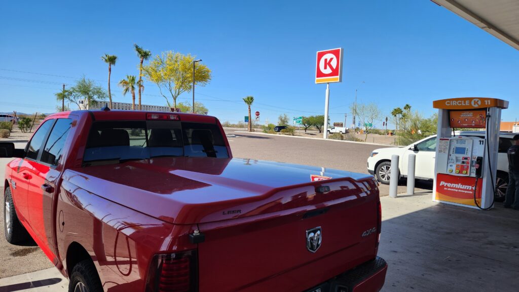 We packed up and departed Phoenix on Friday morning with the rising sun. First stop, Gila Bend Circle K.