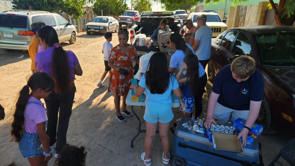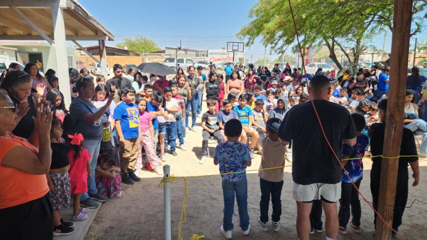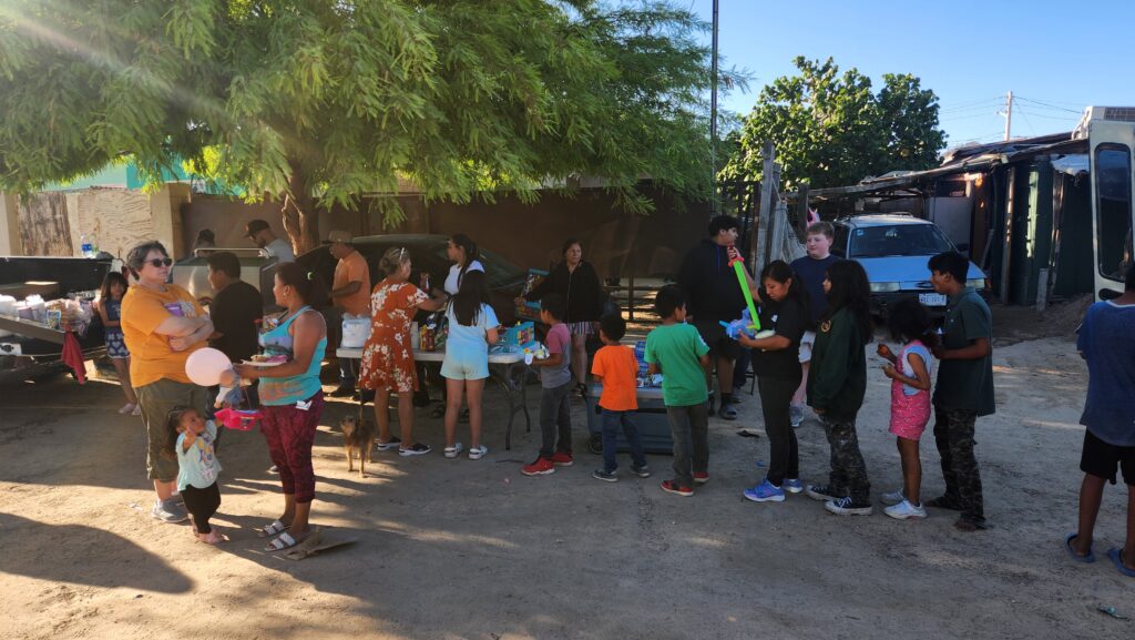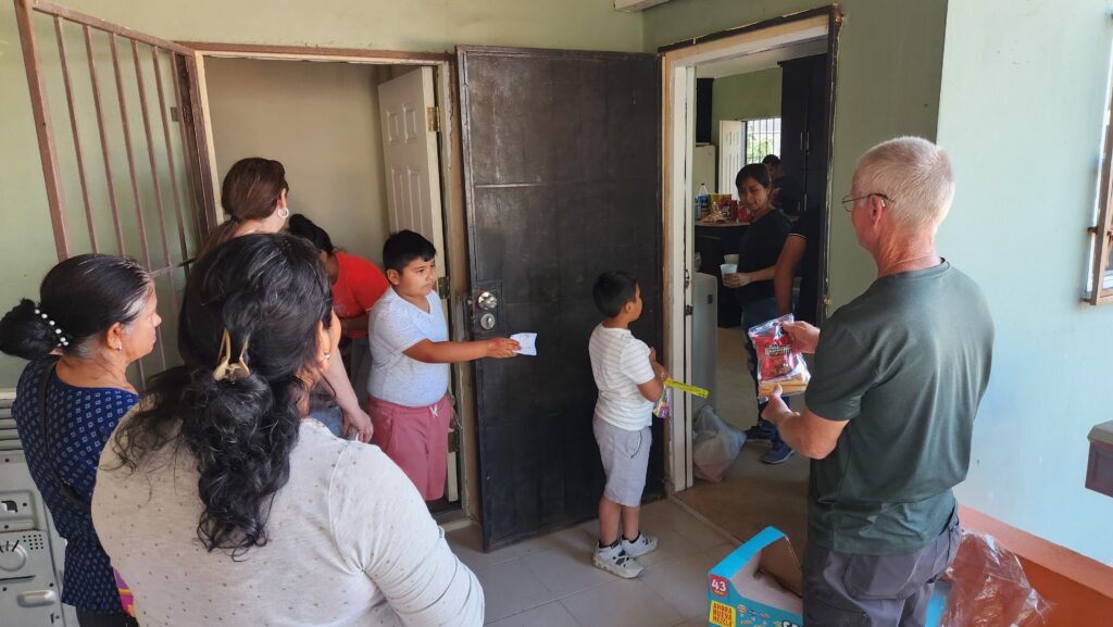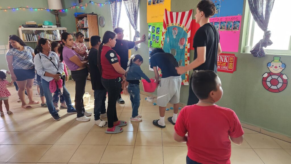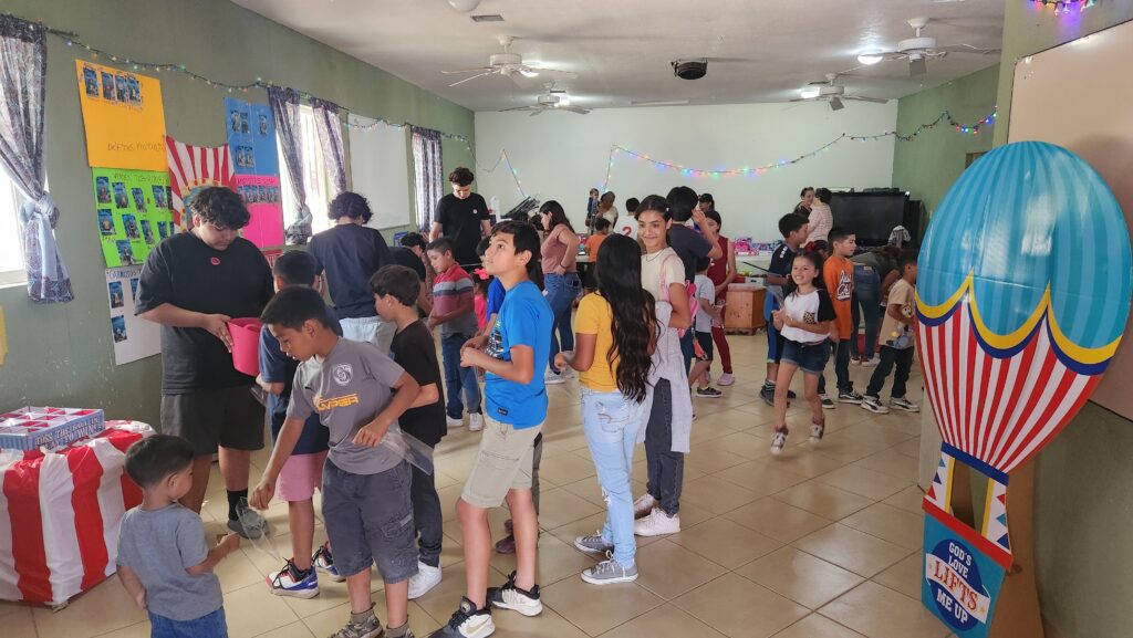 The kids and families gather outside. Sam and Joel provide some entertainment as they are broken down into smaller groups and guided through the community center. Games, candy, and prizes are handed out before everyone receives a hot dog or peanut butter and jelly sandwich on their way out. Over 300 kids attended the event on Saturday.