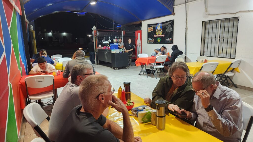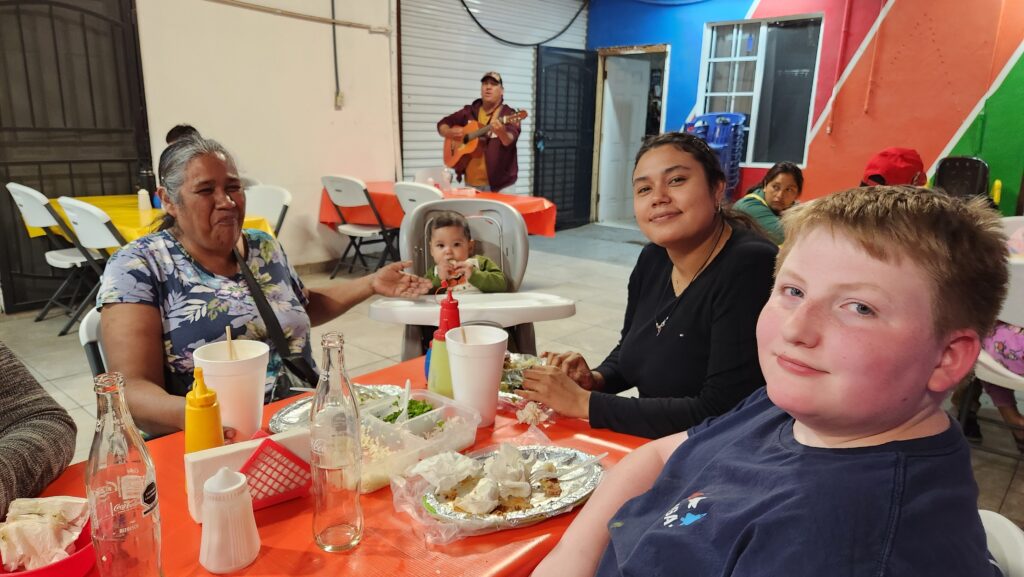 After getting ourselves situated at Joel and Pam’s house, we walked across the street for a late lunch of a few birria tacos.