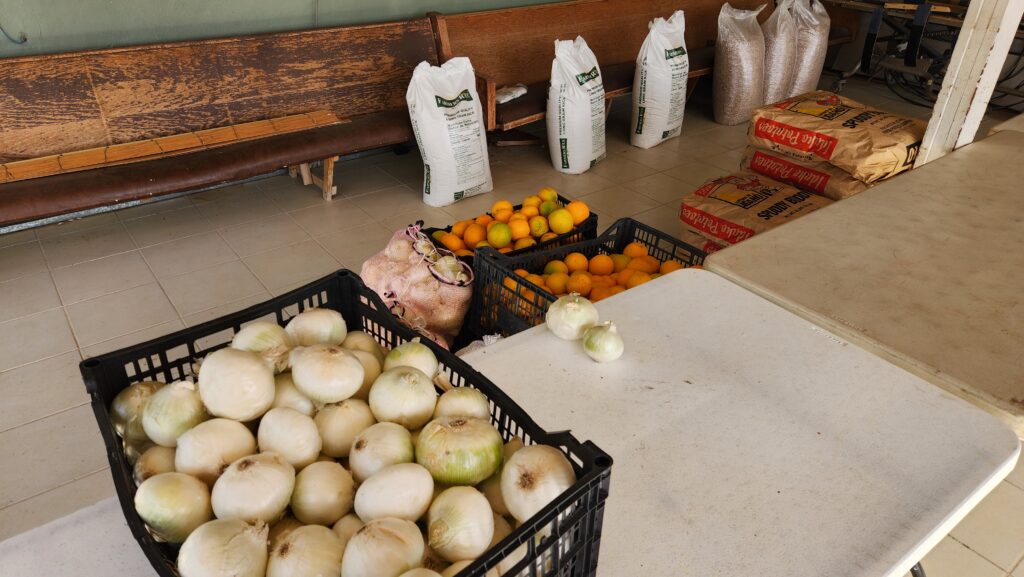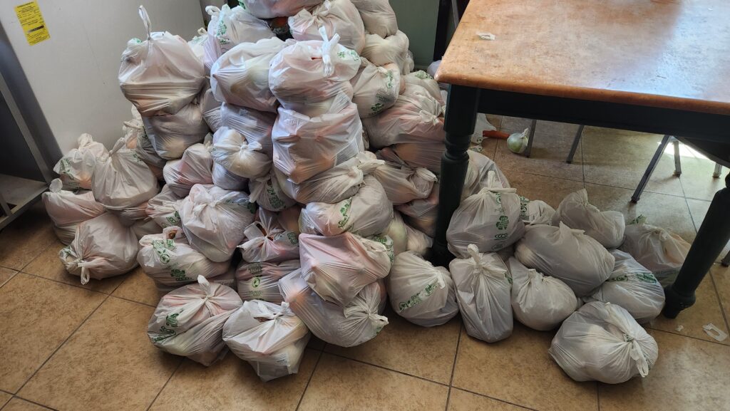 We arrived at the community center on Saturday morning and help unload and stage the food delivery.